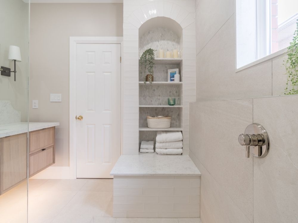 - Think ahead about accessibility: curbless showers, benches, and enough space to move comfortably